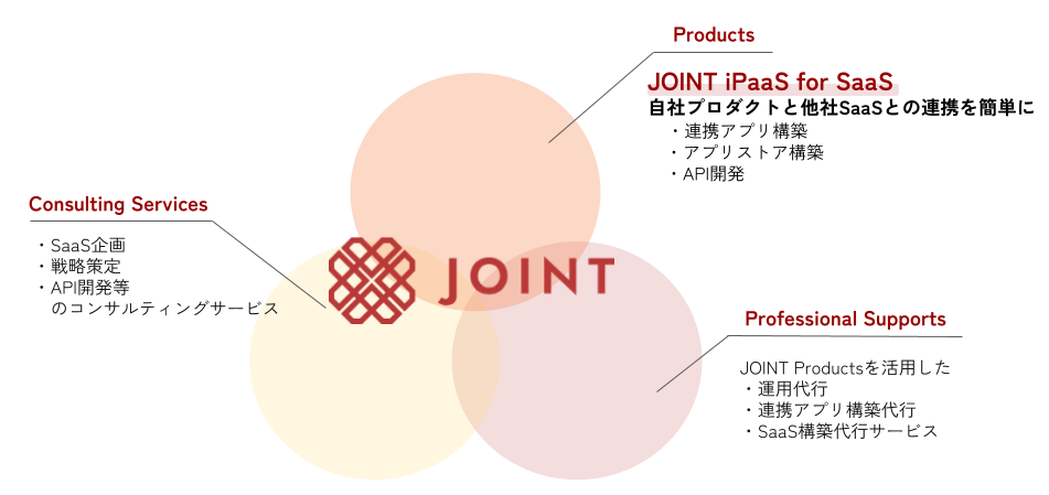 自社のSaaSを他社のSaaSと連携できるようにしたい、といったSaaSベンダー様向けのプラットフォーム「JOINT」もございますので、お気軽にお問い合わせください。