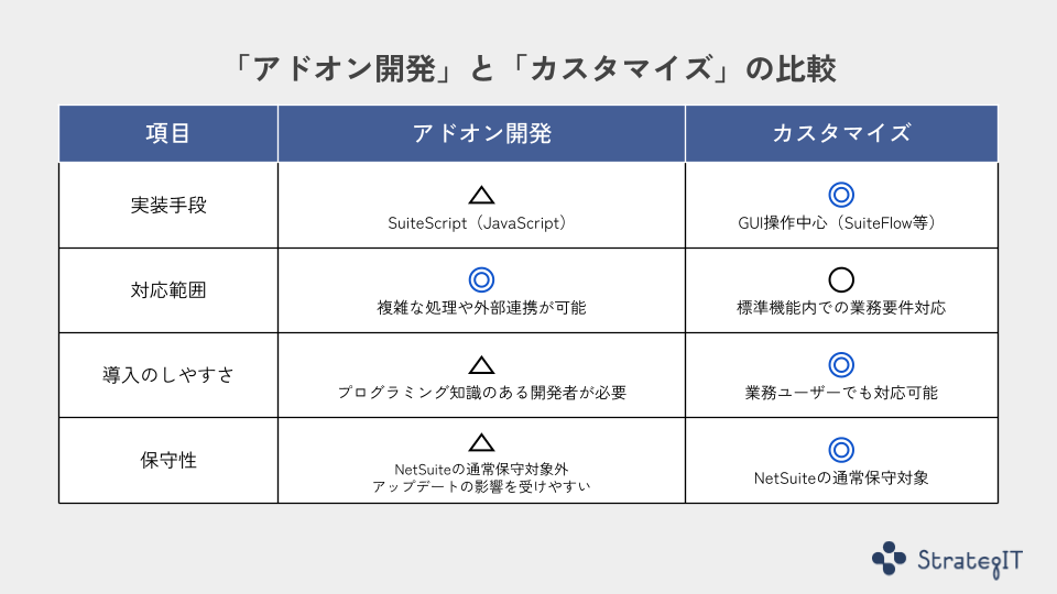 NetSuiteは高い柔軟性を持つクラウドERPとして、多種多様な業務ニーズに対応可能な仕組みを備えています。その柔軟性を支える大きな柱が「アドオン開発」と「カスタマイズ」です。しかし、この2つの違いは混同されがちであり、目的や運用方針に応じて正しく使い分けることが、NetSuite導入・運用の成否を分ける"鍵"となります。