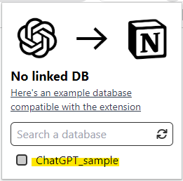 Chrome拡張からChatGPT to Notionを起動し、作成したページ(テーブル)名を選択します。