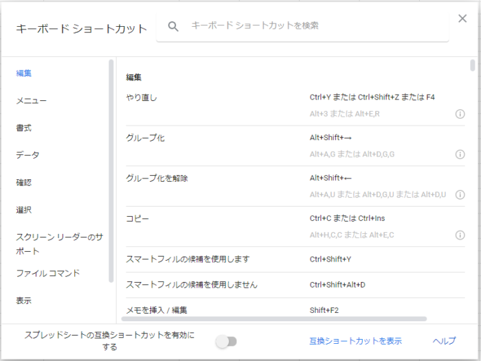 そんな時はショートカットキーのまとめを見る事ができるショートカットキーがあるのを知っていますか?『Ctrl』+『/』を入力すると全てのショートカットキーを見る事が出来ます。