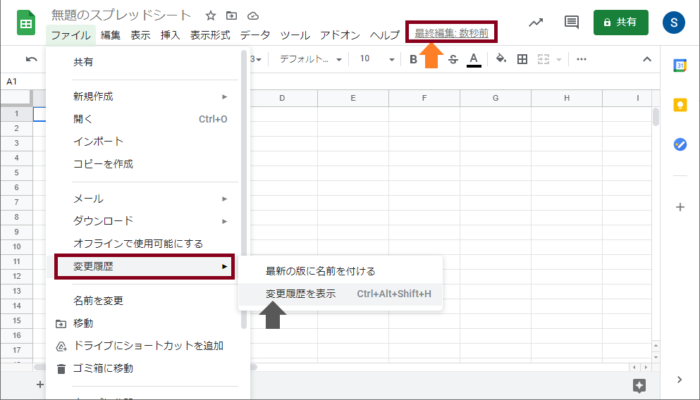 そんな時はヘルプの右に表示される「最終編集」をクリックするか