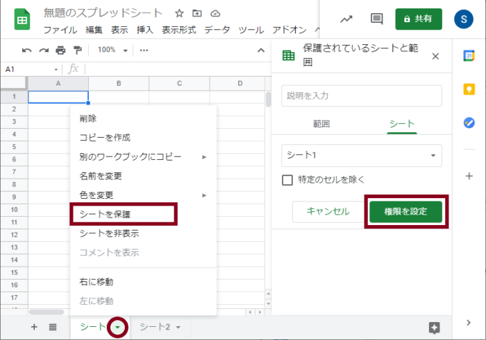 【方法1】特定のシートを保護する