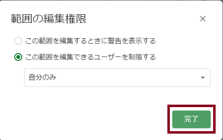 これで自分のみがこのシートを編集できるようになります。