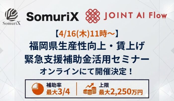 SomuriX主催の福岡県「生産性向上・賃上げ 緊急支援補助金」活用セミナーに登壇します