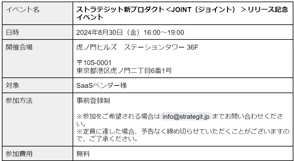 ストラテジット新プロダクト<JOINT(ジョイント) > リリース記念イベント開催のお知らせ