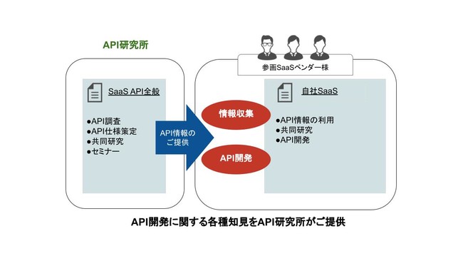 本研究所はSaaSベンダー様が自社SaaSのAPI開発に必要な各種知見を当社が事務局となり取りまとめ、参画頂いたSaaSベンダー様へご提供するサービスとなります。