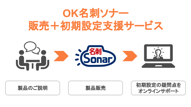 本サービスは、名刺管理アプリ「OK名刺ソナー」の製品説明及び販売と製品導入後の初期設定のオンラインサポートを行うサービスとなっております。